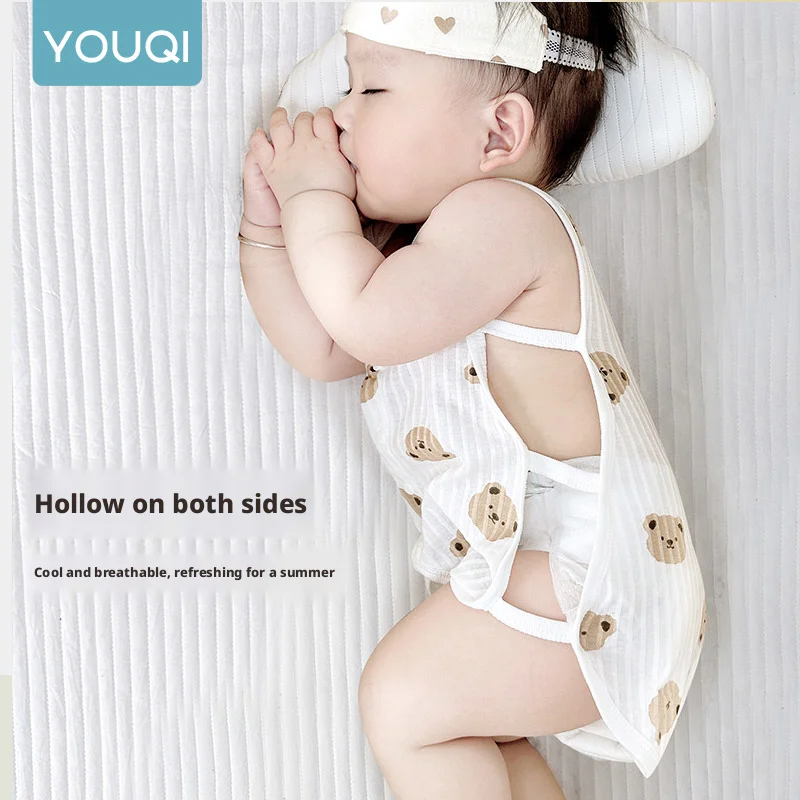 【Youqi】Roupas de bebê chinês para crianças de 0 a 2 anos, macacão de verão estilo pipa para bebês, macacão fino sem mangas para crianças no verão