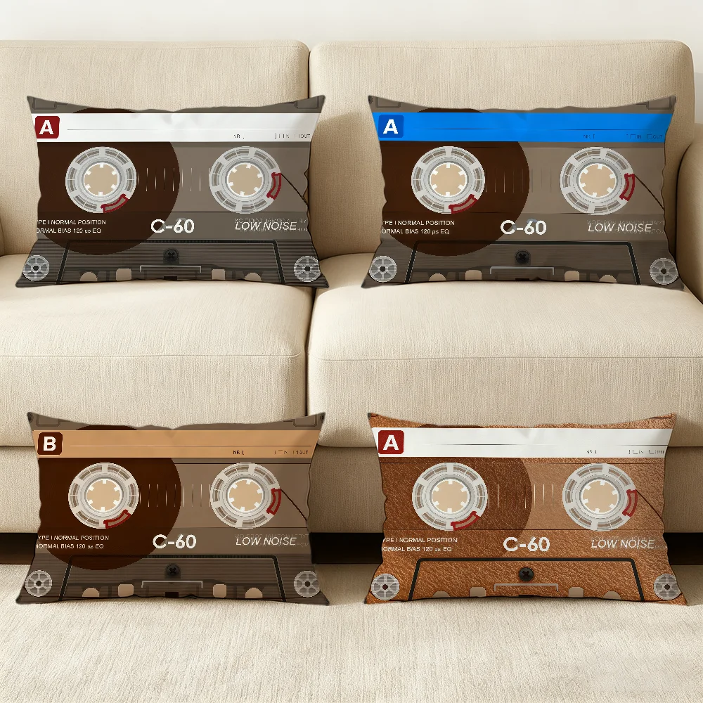 Retro cassete fita C-60 capa de almofada hit produto sofá sala estar escritório retângulo travesseiro casa café cama