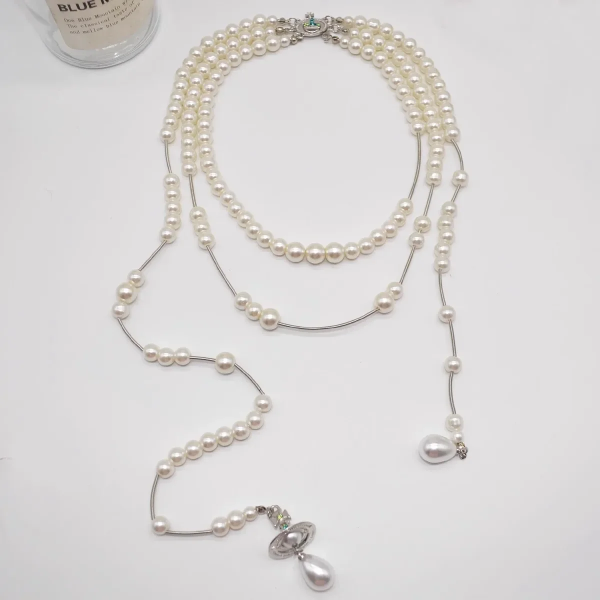 Assimétrico de três camadas pérola camisola corrente colar feminino estilo francês imperatriz multi-camada high-end clavícula colar