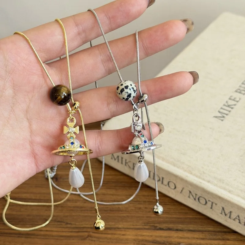 Olho de tigre pedra planeta longo puxar colar feminino outono inverno novo estilo high-end camisola corrente luxo personalidade acessório