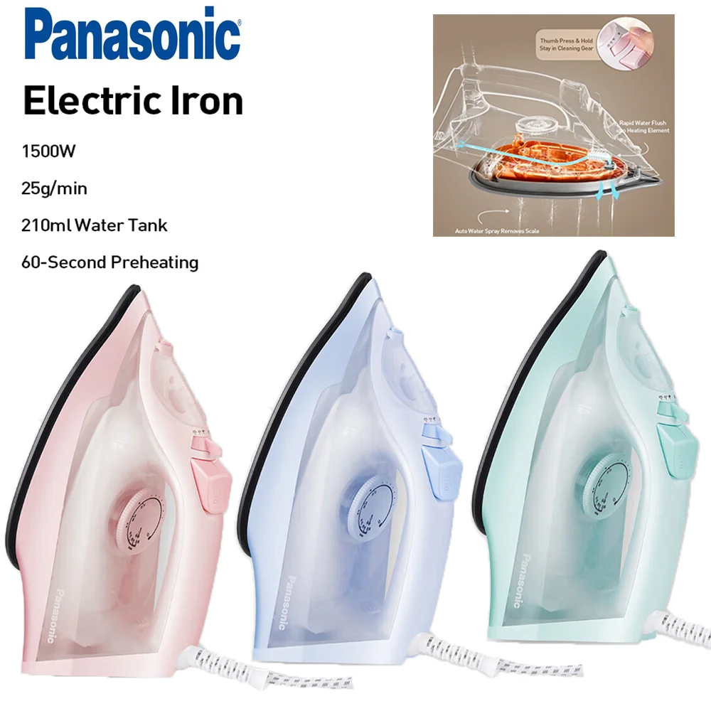 Паровой утюг Panasonic, нижняя пластина 1500 Вт с фтористым покрытием, большая паровая панель с 41- отверстиями, самоочищающаяся 3 режима синего, зеленого, розового цвета