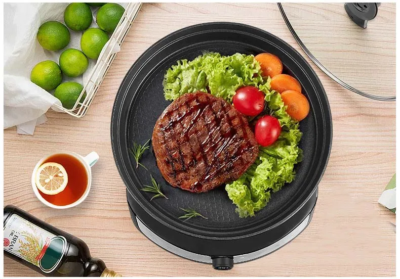 Двусторонняя электрическая машина для выпечки блинов, керамическая сковорода с антипригарным покрытием, глубокая горячая кастрюля, мультиварка, пароварка для барбекю, 1800 Вт