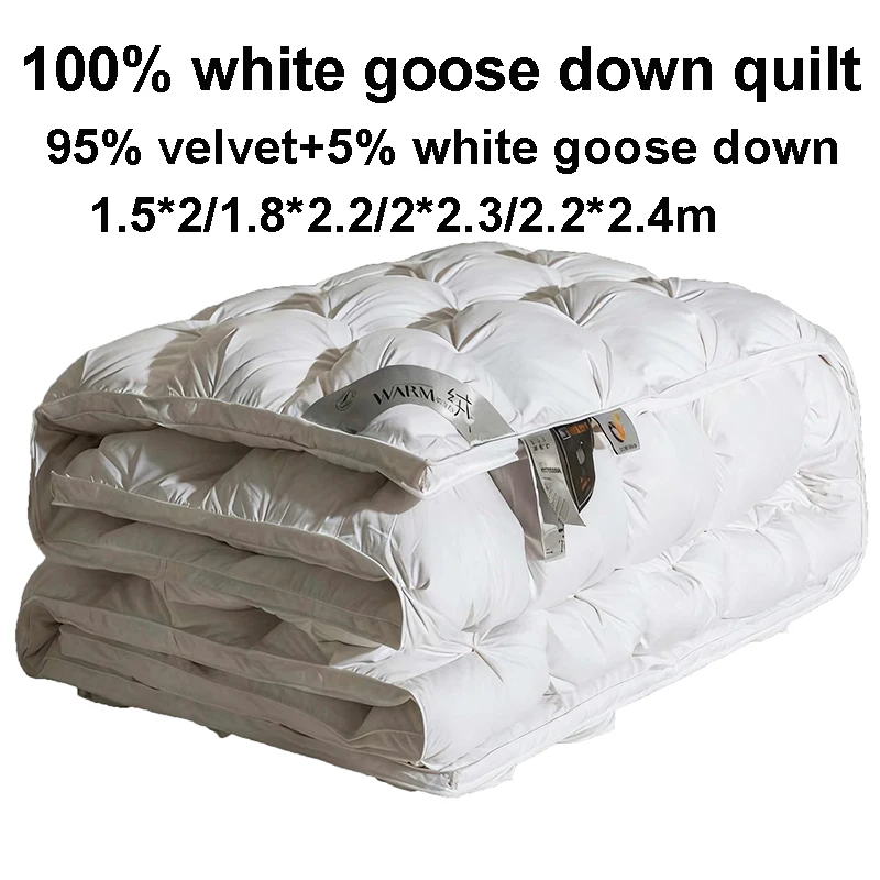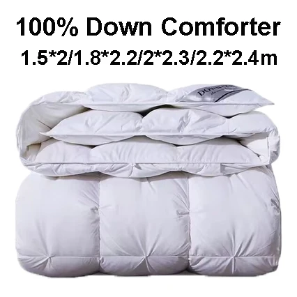 100% пуховое одеяло из белого гусиного пуха, толстое зимнее одеяло, одеяло на четыре сезона, королевский размер, отель, кемпинг, 1,5*2/1,8*2,2/2*2,3/2,2*2,4 м