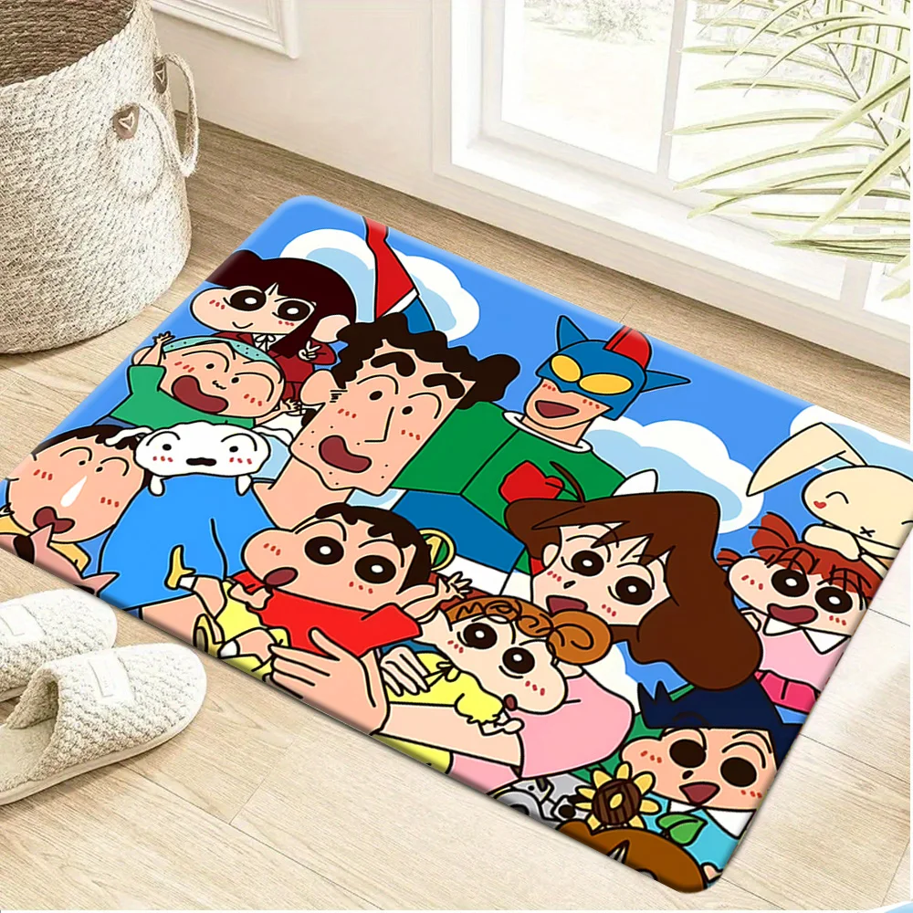 Нескользящий коврик для ванной с принтом группового портрета семьи и друзей Шин-чана, декоративный напольный коврик с милыми аниме-персонажами, впитывающий воду