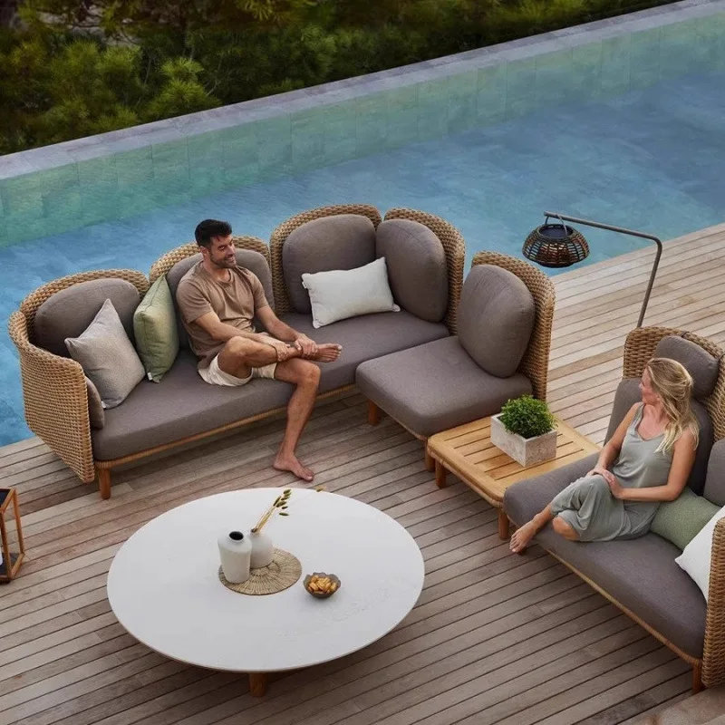 Открытый уличный креативный диван, вилла, двор, отель B & B, уличный стул из ротанга, водонепроницаемый солнцезащитный крем, дизайнерский набор из трех предметов