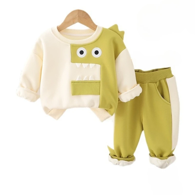 Новая осенне-зимняя одежда для малышей, плотная теплая футболка с героями мультфильмов для мальчиков, штаны, 2 шт./компл., детская одежда для девочек, спортивные костюмы для малышей