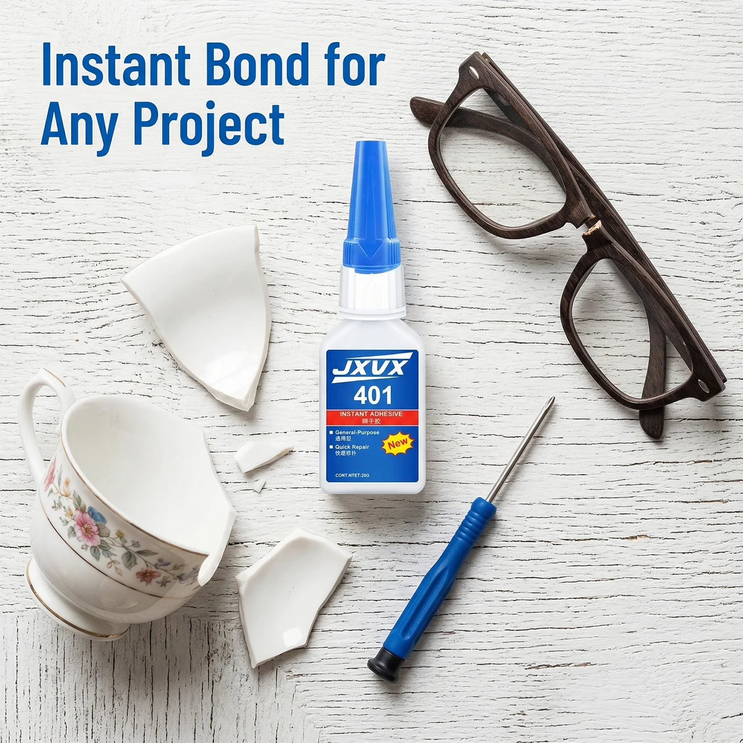 Высокопрочный клей 401 (1-5 шт.) для мгновенного склеивания и ремонта металла, пластика и дерева на производстве и в домашних условиях - быстросохнущий цианоакрилатный клей 5S (20 г)
