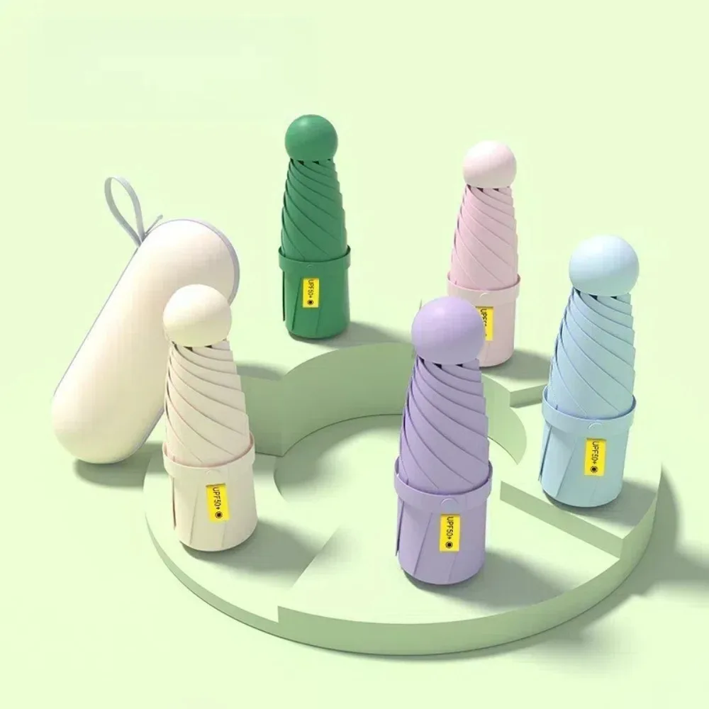 Новый мини-капсульный складной зонт, виниловый зонт с коробкой, зонт от солнца и дождя UPF50 +, защита двойного назначения, дорожные аксессуары для улицы