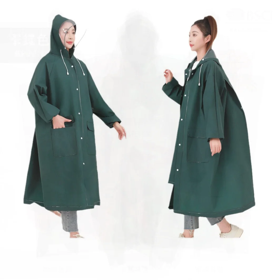 Длинный цельный плащ унисекс, водонепроницаемая ткань из ЭВА для всего тела, пончо для взрослых, одноразовое уличное туристическое дождевик, темно-зеленый, черный