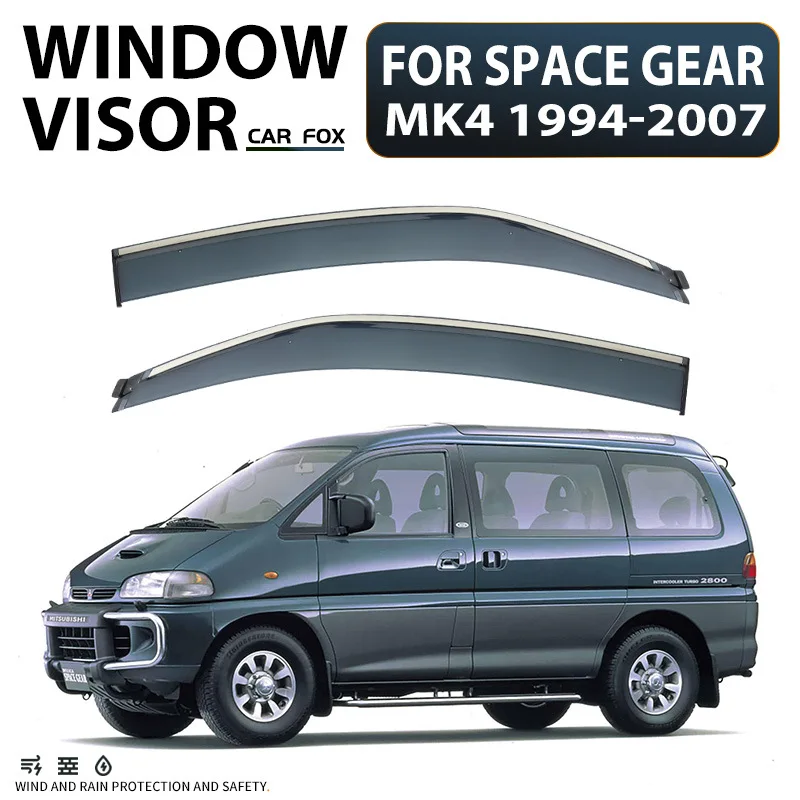 Комплект из 4 дефлекторов окон для Mitsubishi Space Gear 1994-2007: защита от дождя и солнца, навесы на боковые окна, аксессуары для стайлинга автомобиля