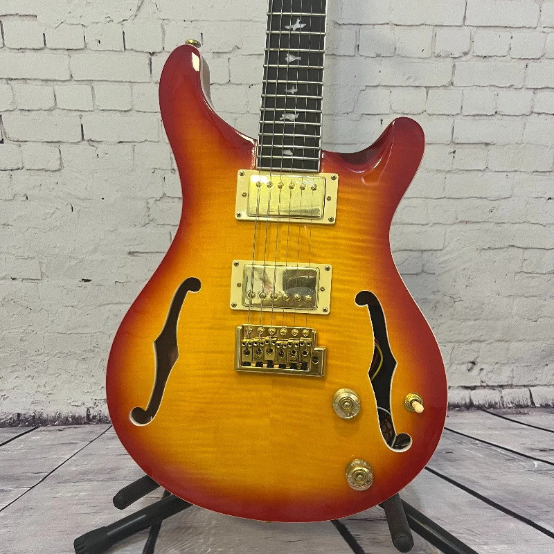 Электрогитара Cherry Sunburst Colour PRS с корпусом из красного дерева, полуполым корпусом и F-образными отверстиями, для начинающих, бесплатная доставка