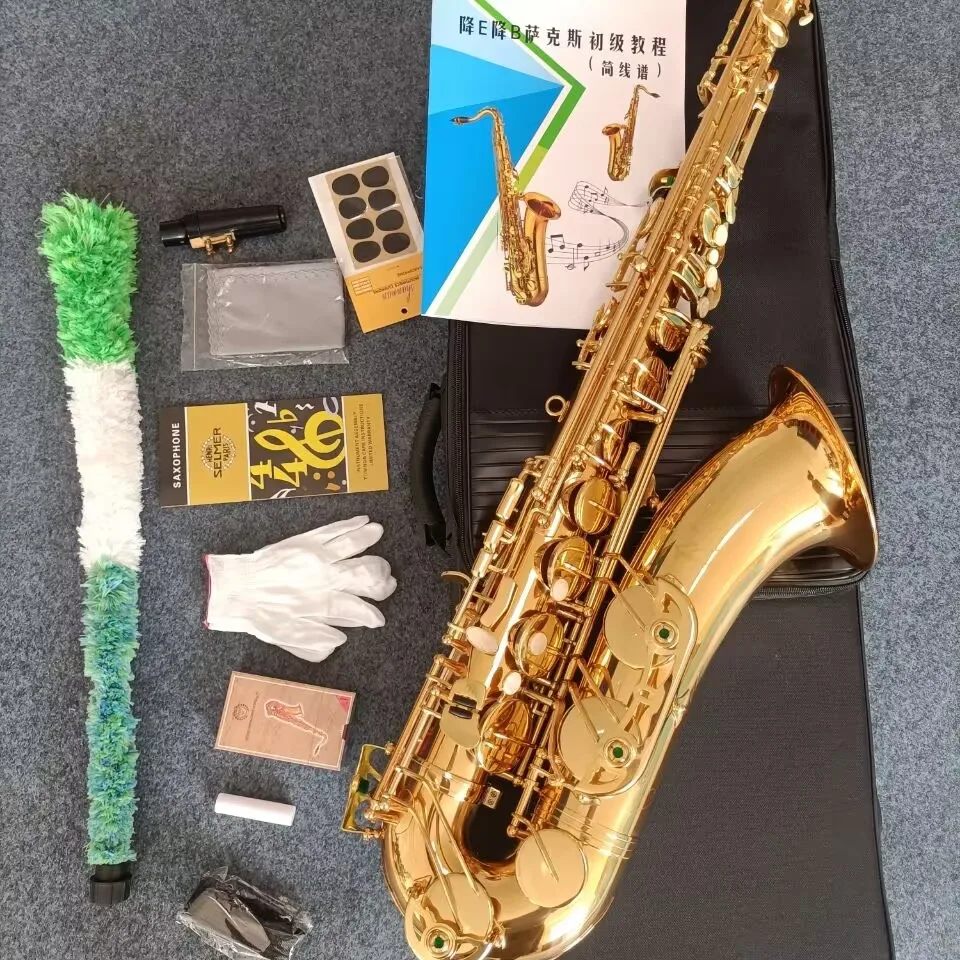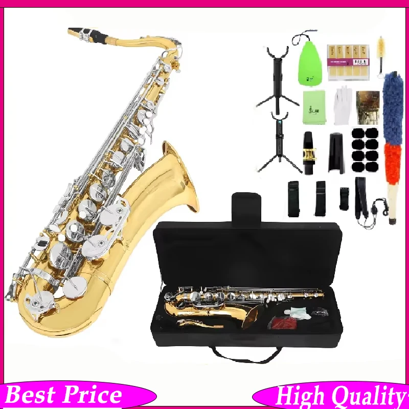 Тенор-саксофон черного золота B, плоский саксофон для начинающих студентов с обновленным портативным чехлом, набор для чистки тростника, перчатки, шейный ремешок
