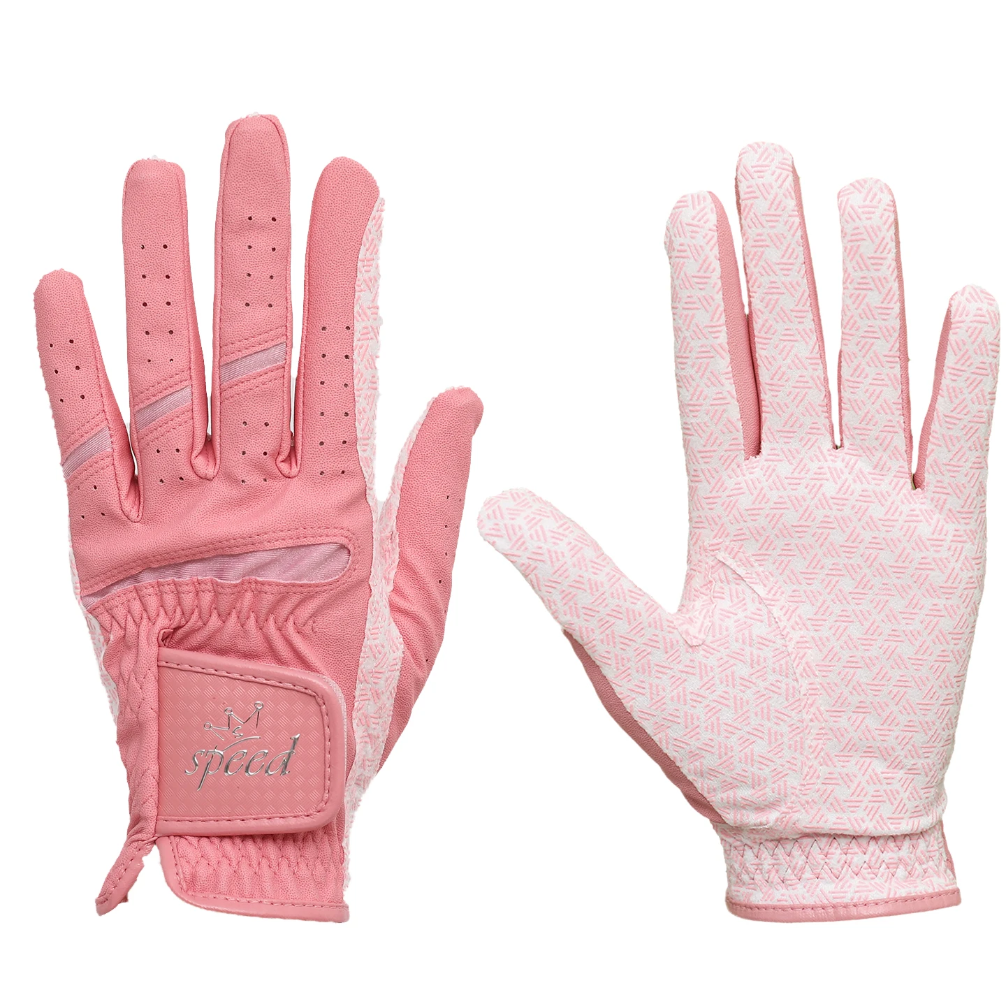 Новинка, 1 пара, женские мягкие перчатки для гольфа из искусственной кожи, женские нескользящие перчатки в гранулах, спортивные варежки, Элегантные перчатки для гольфа с правой и левой ручкой