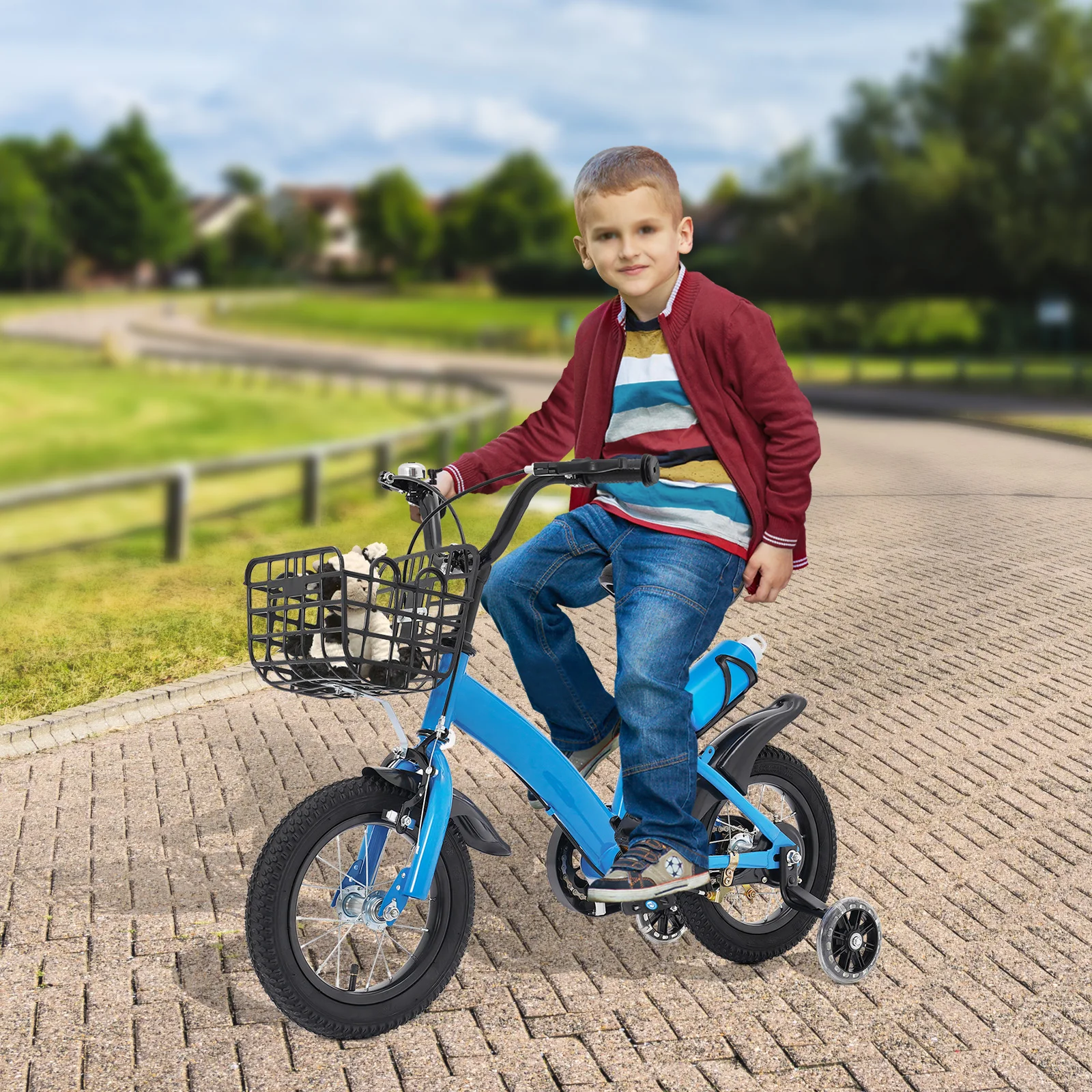 14-дюймовый детский велосипед с тренировочными колесами и корзиной, регулируемая высота сиденья из высокоуглеродистой стали, детский велосипед для мальчиков и девочек 3-5 лет