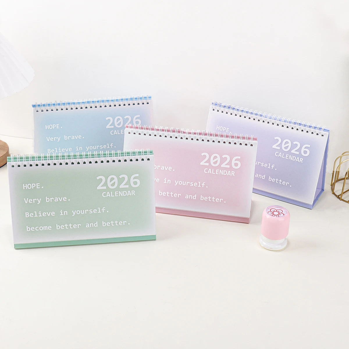 Настольный календарь на 2026 год, штамп с красным цветком, мотивационный перекидной небольшой настольный календарь, милые офисные школьные принадлежности