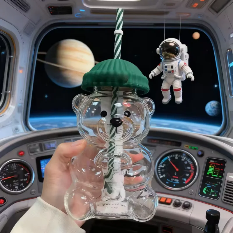 Новинка! Хит продаж! Милый пластиковый стакан с трубочкой в виде медведя, прозрачный, для мужчин и женщин, подарок на день рождения, для молочного чая, 2026 Новинка