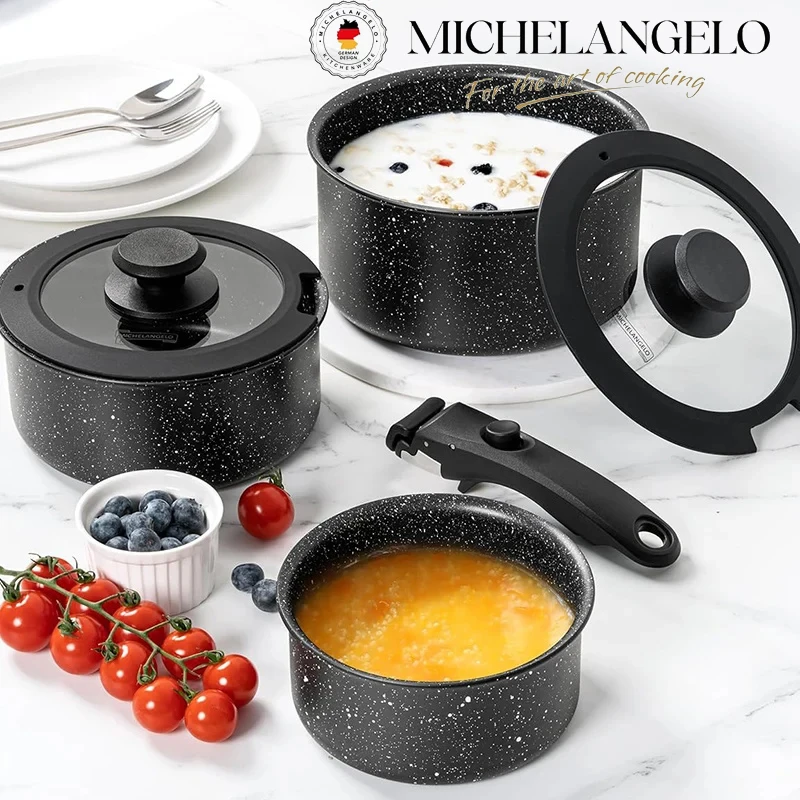 MICHELANGELO, 6 шт./компл., набор соусов со съемными ручками, 1 карат, 2 Qt и 3 Qt, нетоксичный молочный горшок, набор штабелируемой посуды для кемпинга