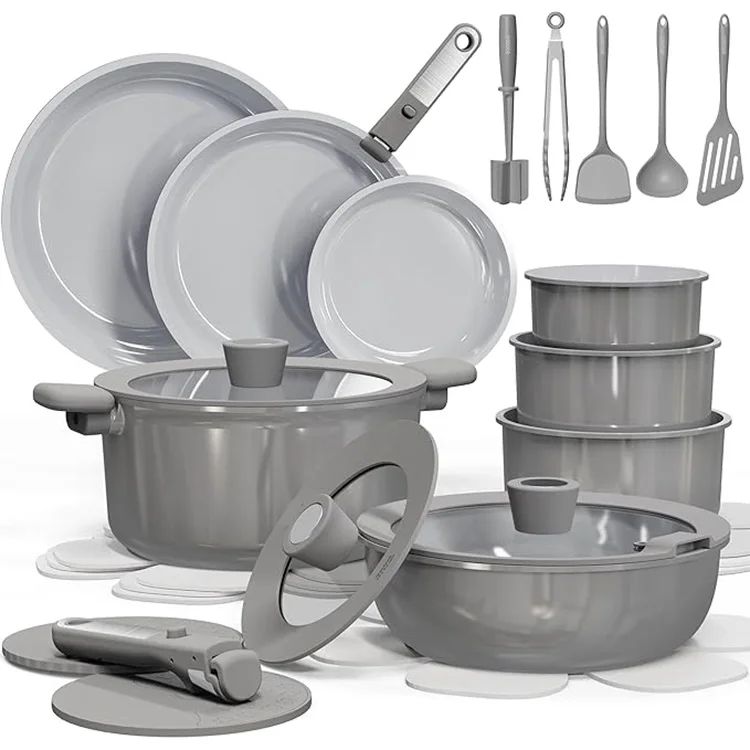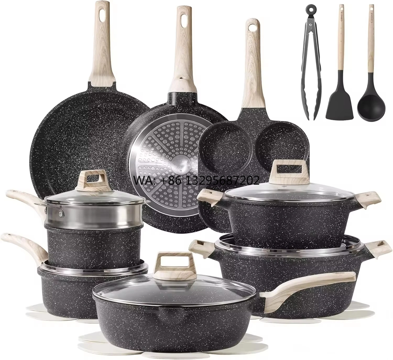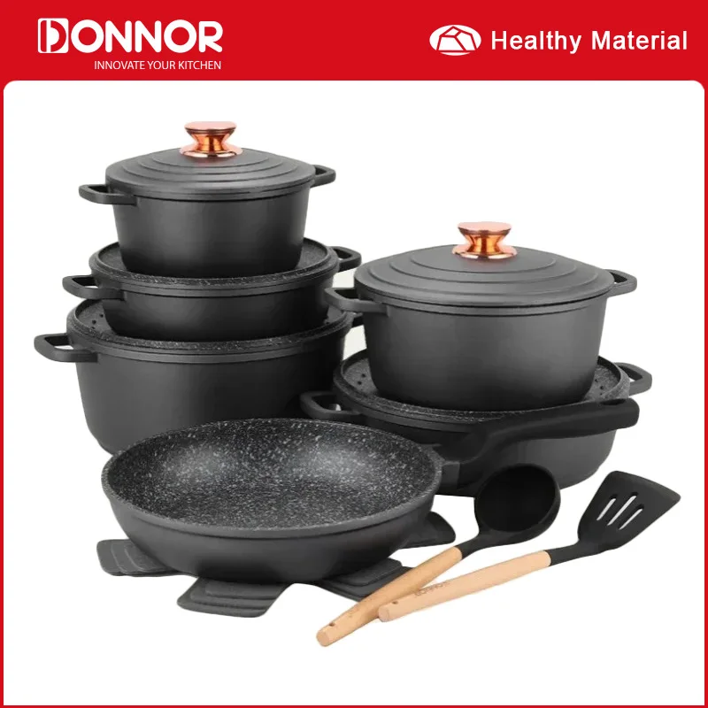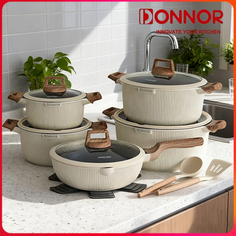 DONNOR 15 шт./компл. антипригарные суповые кастрюли с вертикальными линиями, кастрюля для тушения, литье под давлением, композитное дно, набор кастрюль для приготовления пищи, универсальные плиты