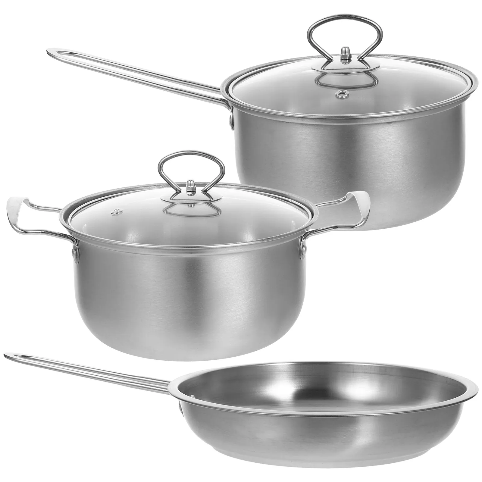 Набор посуды из 3 предметов из нержавеющей стали, кастрюля для супа в корейском стиле, сковорода для молока, устойчивая к ржавчине, прочная кухонная утварь, легко чистящаяся поверхность, подарочный комбинированный комплект