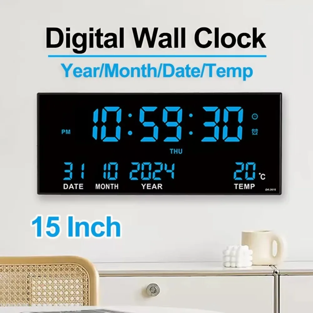 Цифровые настенные часы с будильником, отображением температуры, даты и календаря, 8 режимов будильника, 14 дюймов, электронные LED-часы, подключаемые к сети