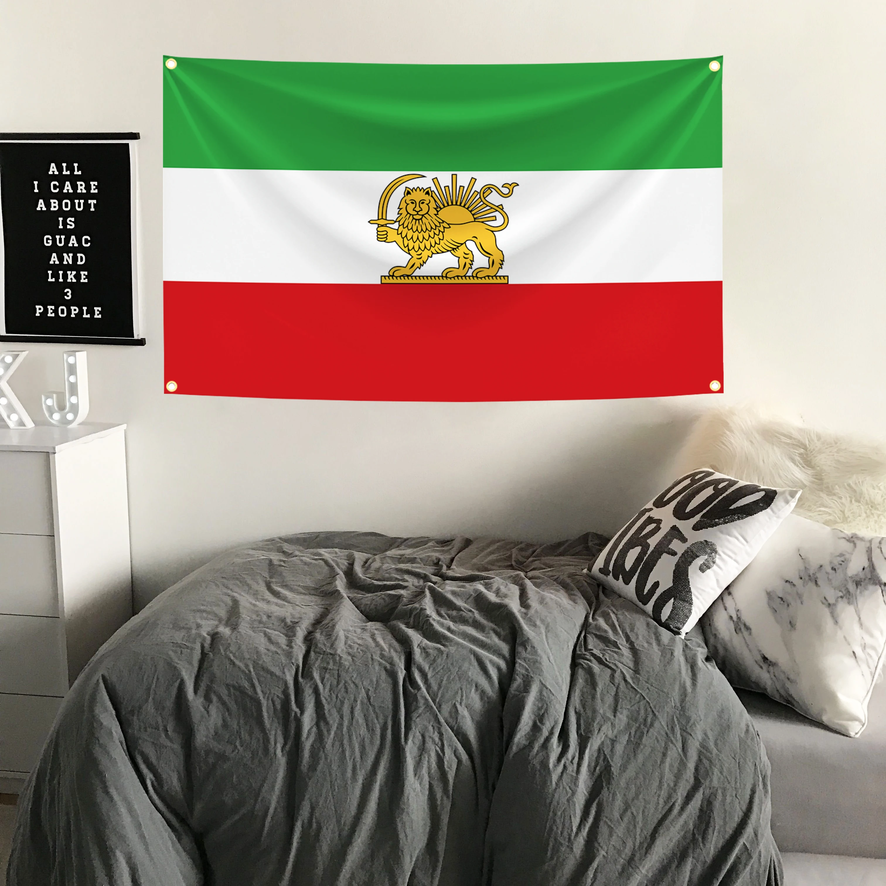 Флаг Ирана с изображением льва и солнца, 90x150 см, яркие цвета, устойчивый к выцветанию, исторический флаг Ирана, полиэстер с латунными люверсами.