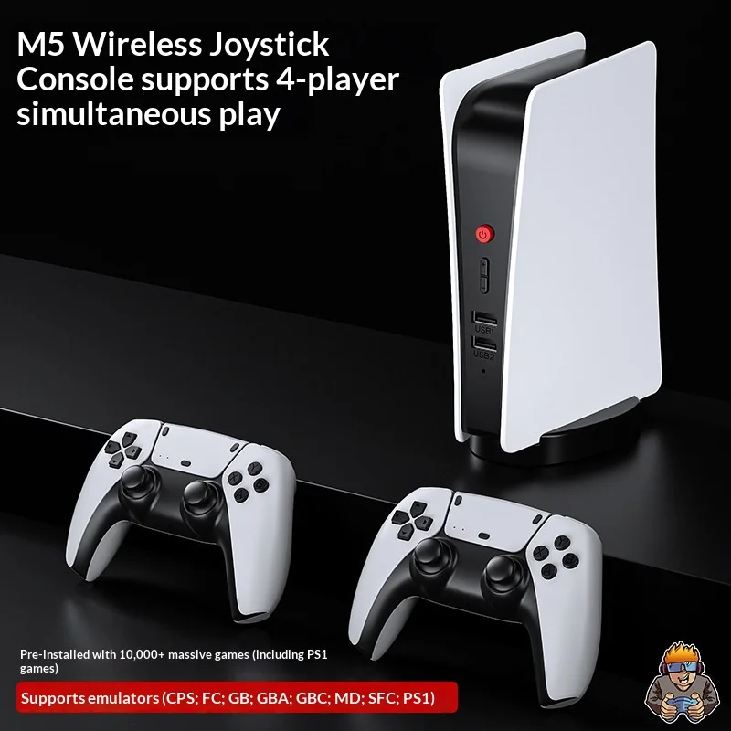 Игровая консоль M5 4K HD со встроенными динамиками, 9 эмуляторами, беспроводными двойными джойстиками, HDMI-выходом на ТВ и 20000 играми для соревнований вдвоем
