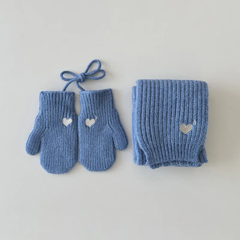 Детский зимний шарф, комплект перчаток, детские вязаные теплые варежки с вышивкой в форме сердца для девочек и мальчиков, шарфы, детские аксессуары, От 2 до 6 лет