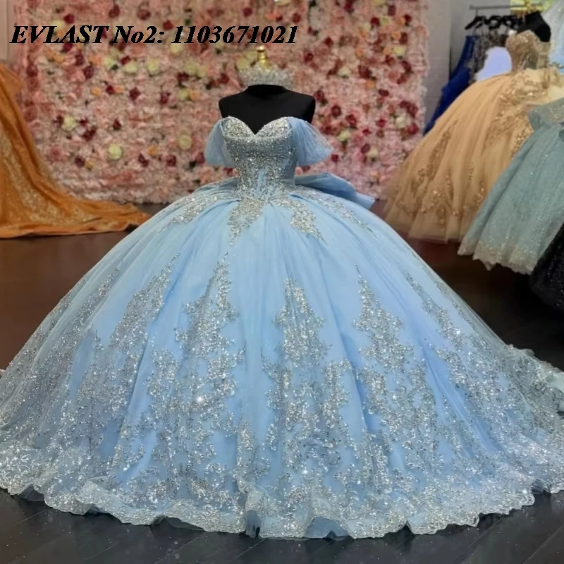 Индивидуальное блестящее белое платье EVLAST для церемонии Кинсеаньеро, бальное платье с открытыми плечами, кружевными аппликациями и бисером, для Sweet 16, Vestidos 15 Anos E2QA392