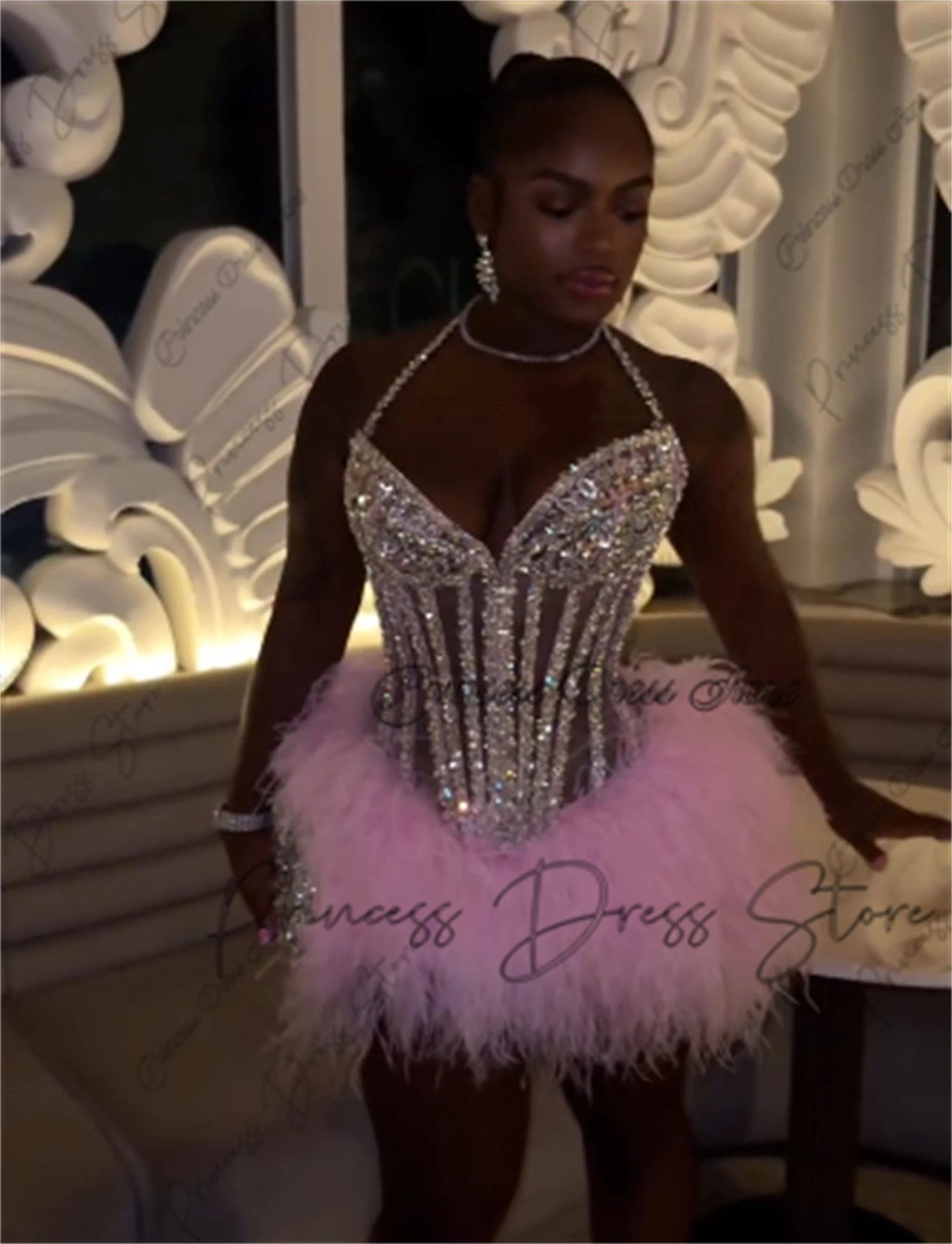 Блестящее сексуальное короткое платье для выпускного вечера 2025, блестящее платье с бусинами и перьями, с кристаллами, искусственные перья, коктейльное платье для вечеринки на день рождения, для встречи выпускников