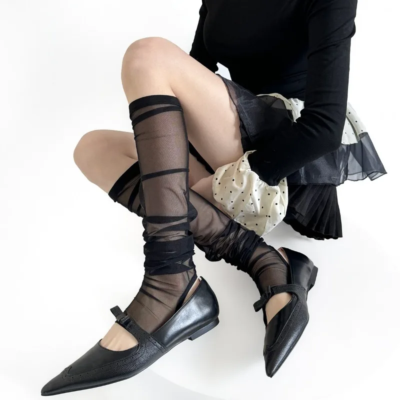 Милые балетные широкие носки с ремешками, вязаные чулки с ремешками, зимние теплые леггинсы Jk, Y2K, носки с бантом, корейские женские носки до середины икры