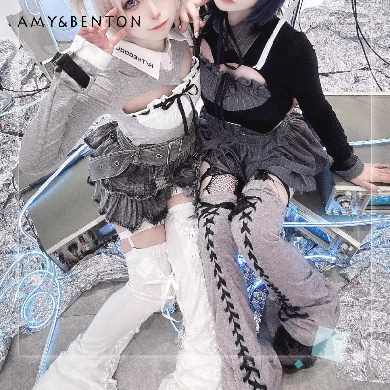 Однотонные черно-белые высокие носки до бедра Y2K, сексуальные утягивающие чулки для похудения, японская Лолита, милая девушка, гетры выше колена, чехлы