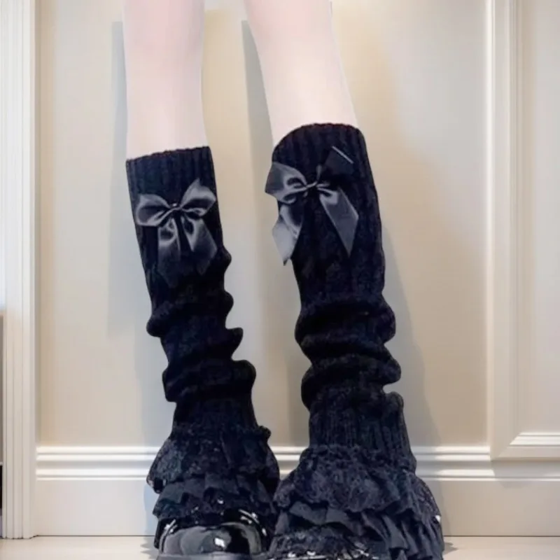 Милые гетры в стиле Лолиты для девочек, женские длинные носки, вязаные гетры для ног, осень-зима, вязаные крючком носки, готические манжеты для ботинок