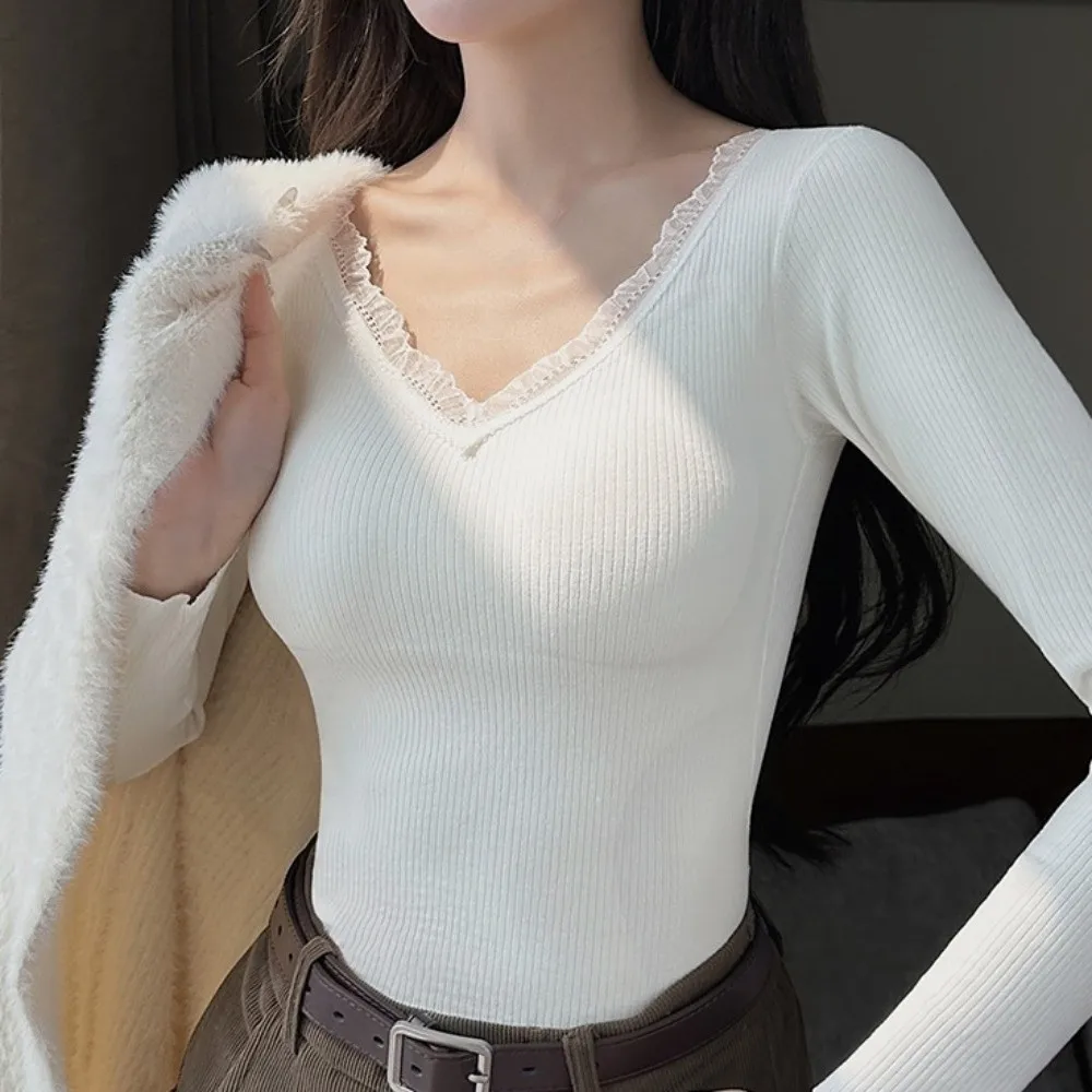 Женское термобелье с подкладкой на груди, корректирующее фигуру, кружевное, теплое, комплект из длинного топа и брюк, однотонное, комфортное, утягивающее белье
