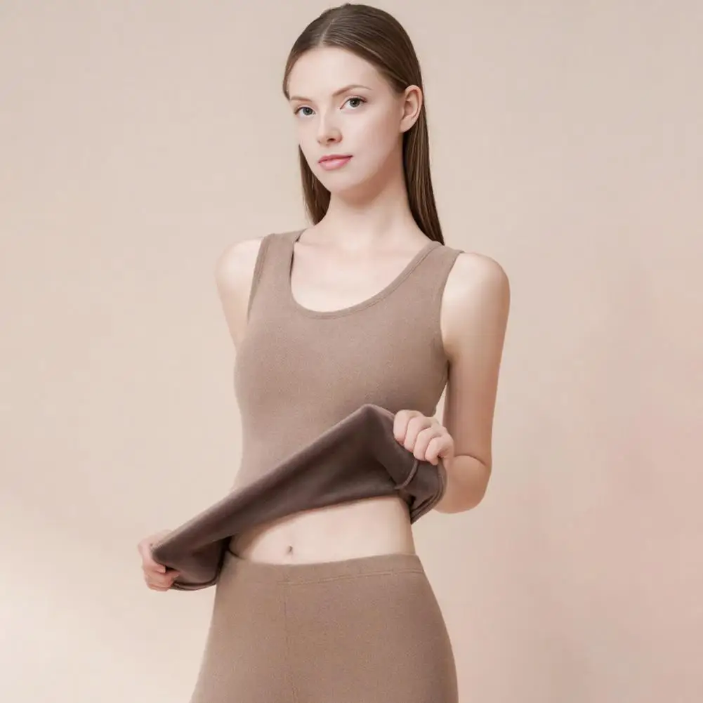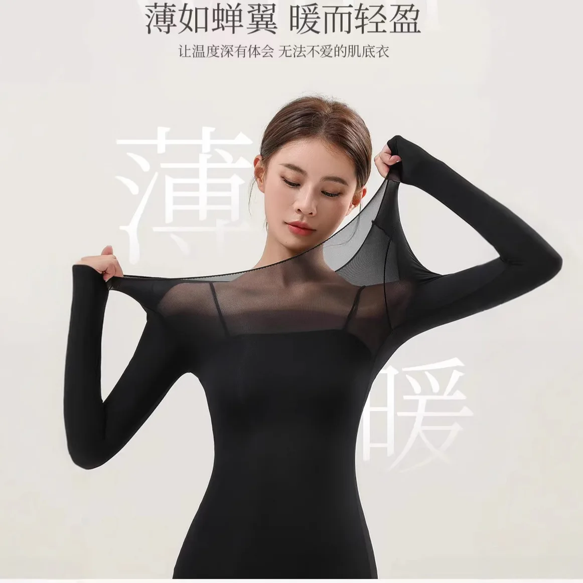 Женское бесшовное термобелье, костюм плюс бархатное нижнее белье, тонкие брюки большого размера с круглым вырезом и длинными рукавами, комплект из двух предметов