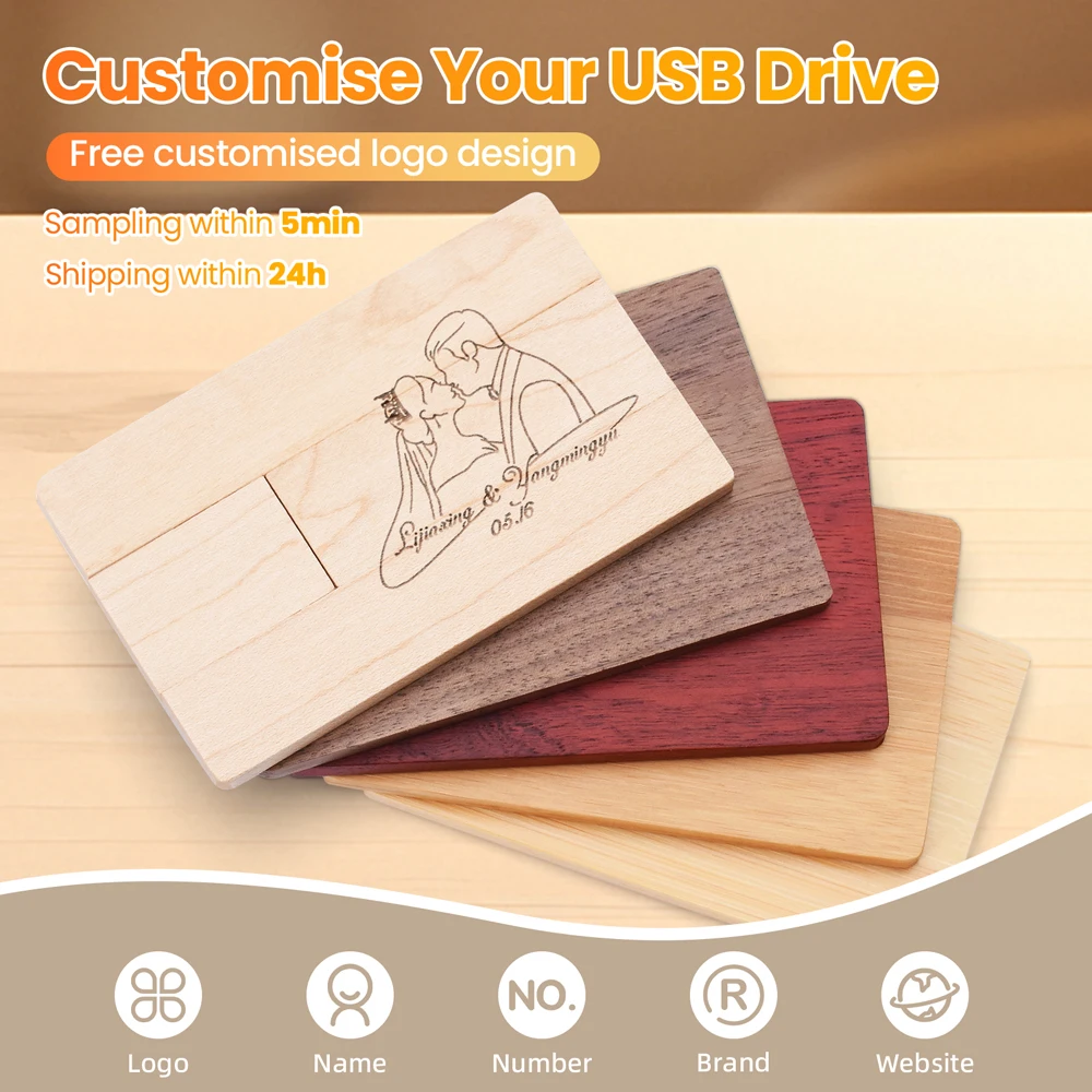 Деревянная карта USB-флеш-накопитель Память Бесплатный индивидуальный логотип Pen Drive 128 ГБ 64 ГБ 32 ГБ 16 ГБ Устройство хранения Pendrive Cle USB Stick