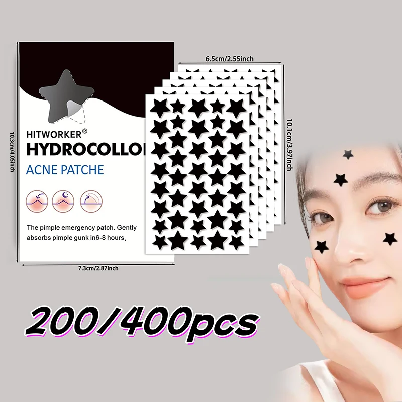 200/400 шт., черный пластырь от прыщей в форме звезды, не вызывающий спирт, не раздражающий, дышащий, впитывающий пластырь от прыщей, модный ультратонкий