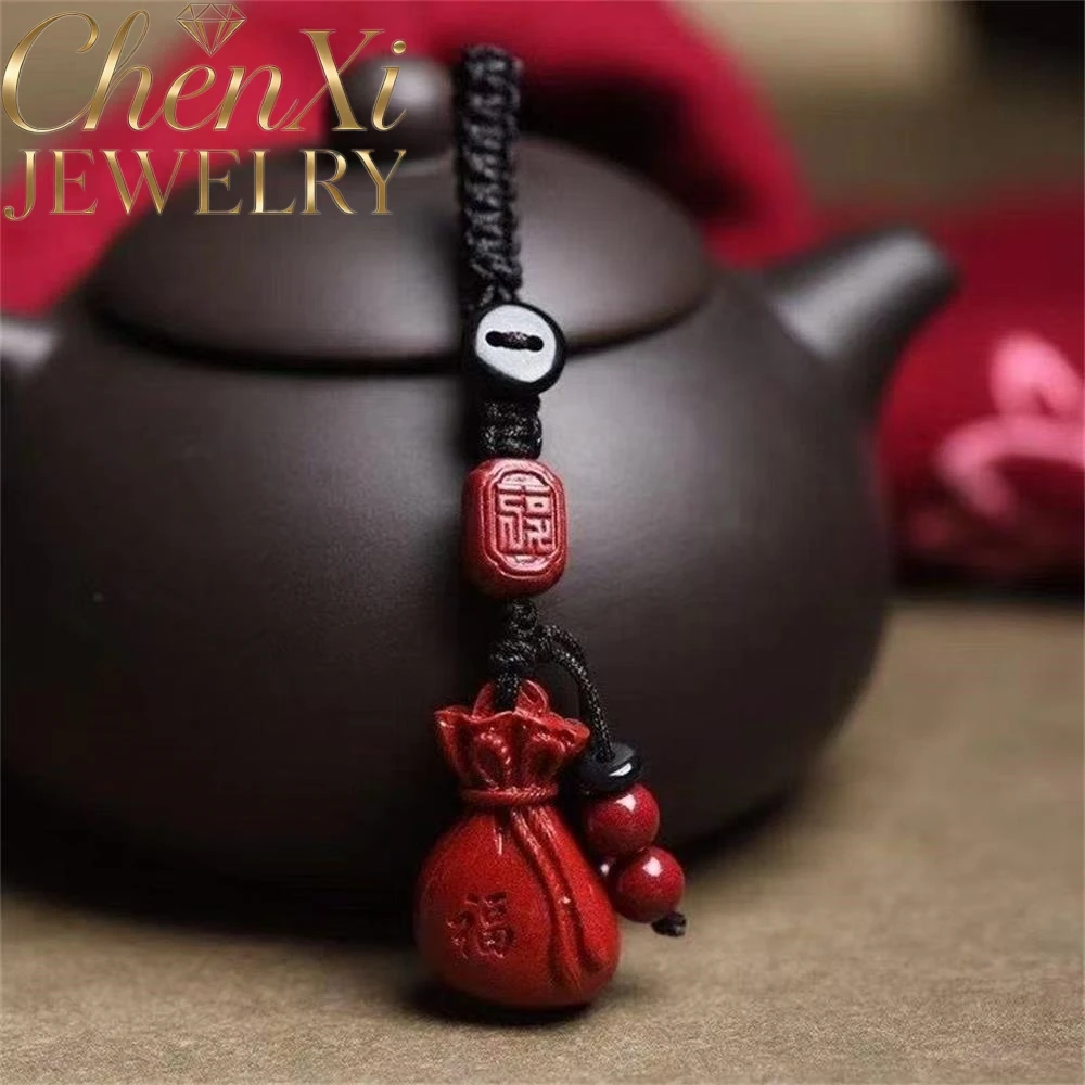 Элитный брелок-талисман из киновари с иероглифом «Фу» в виде денежного мешочка: роскошное, модное, изысканное и элегантное украшение, популярный амулет.