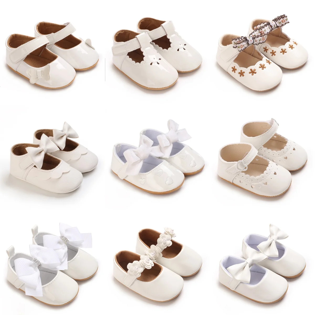 Белые весенне-осенние детские туфли принцессы с милым бантом для детей 0–18 месяцев, повседневные противоскользящие туфли принцессы из искусственной кожи с мягкой резиновой подошвой, прогулочная обувь