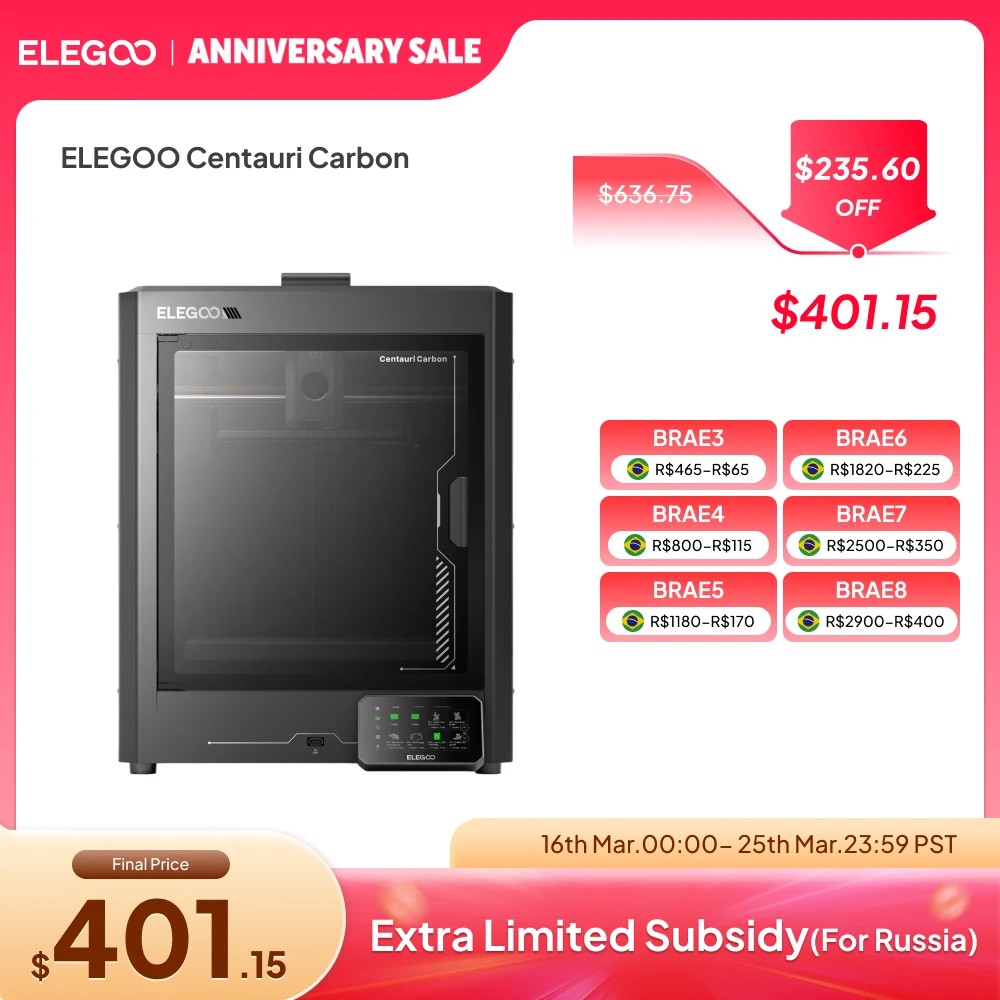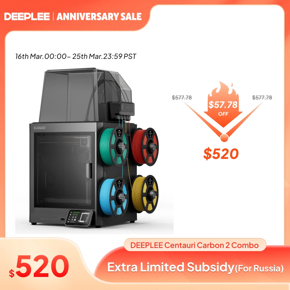 3D-принтер ELEGOO Centauri Carbon 2 Combo, многоцветная печать с максимальной скоростью 500 мм/с, 4-цветная печать с CANVAS, область печати 256x256x256 мм