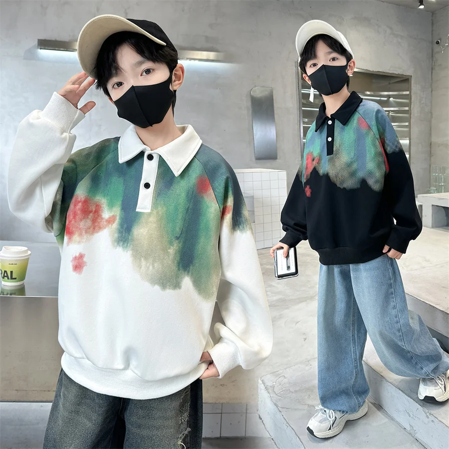 Детская школьная форма, рубашка-поло на весну и осень, Детские повседневные топы с длинным рукавом и отложным воротником для подростков, одежда для мальчиков