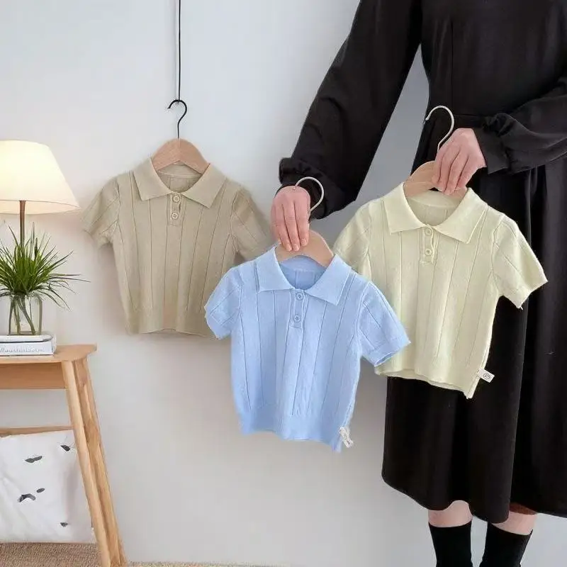 Летняя однотонная футболка с короткими рукавами для мальчиков и девочек, детская модная рубашка-поло с короткими рукавами и лацканами, формальная студенческая одежда