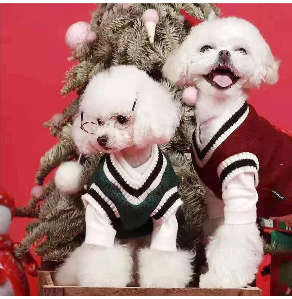 Трикотаж для щенков с v-образным вырезом в студенческом стиле, зимний теплый свитер для собак для маленьких собак, жилет для щенков, одежда, куртка для котят, наряды