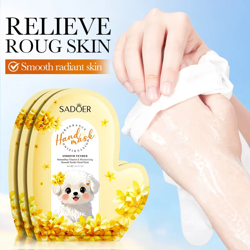 Маска для рук с османтусом и витамином Е для осени и зимы, увлажняющая, восстанавливающая сухость, трещины, шероховатость и уменьшающая видимость морщин на руках.