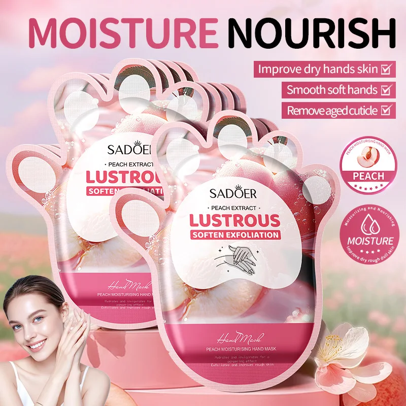 10 пар нежных масок для рук с персиком для осени и зимы, увлажняющие, восстанавливающие сухость, трещины, шероховатость и уменьшающие видимость морщин на руках.
