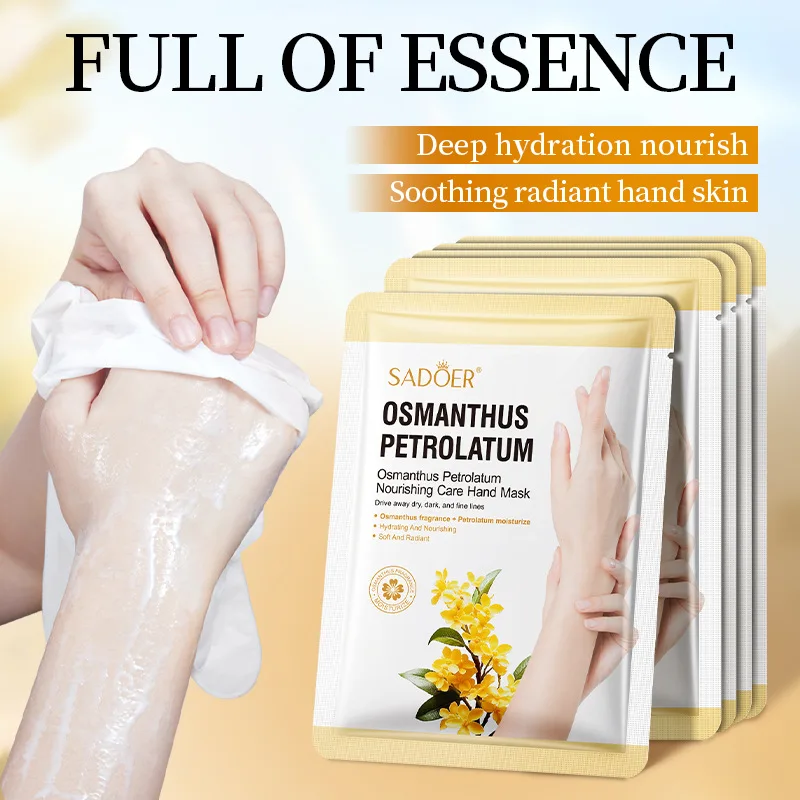 Маска для рук с османтусом и вазелином, питательная, увлажняющая, восстанавливающая сухость, трещины, шероховатость и уменьшающая видимость морщин на руках.