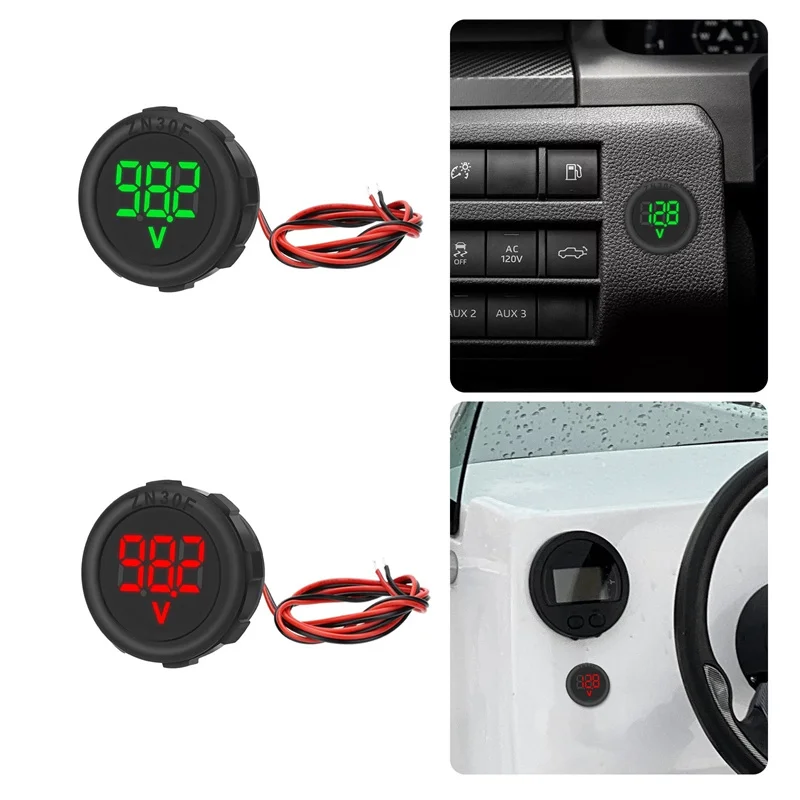 Цифровой вольтметр постоянного тока, 4-100 в, круглый дисплей, двухпроводной автоматический Вольтметр постоянного тока, цифровой автомобильный вольтметр, дисплей для головы, защита от обратного подключения