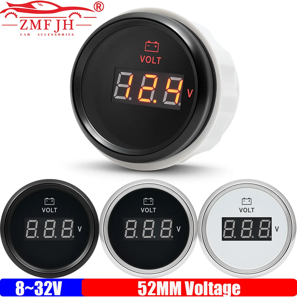 Автомобильный счетчик 12 В, автомобильный автомобильный датчик, 2 дюйма, 52 мм, вольтметр с черным корпусом, белый светодиод, напряжение 8-16 В, вольтметр для автомобиля