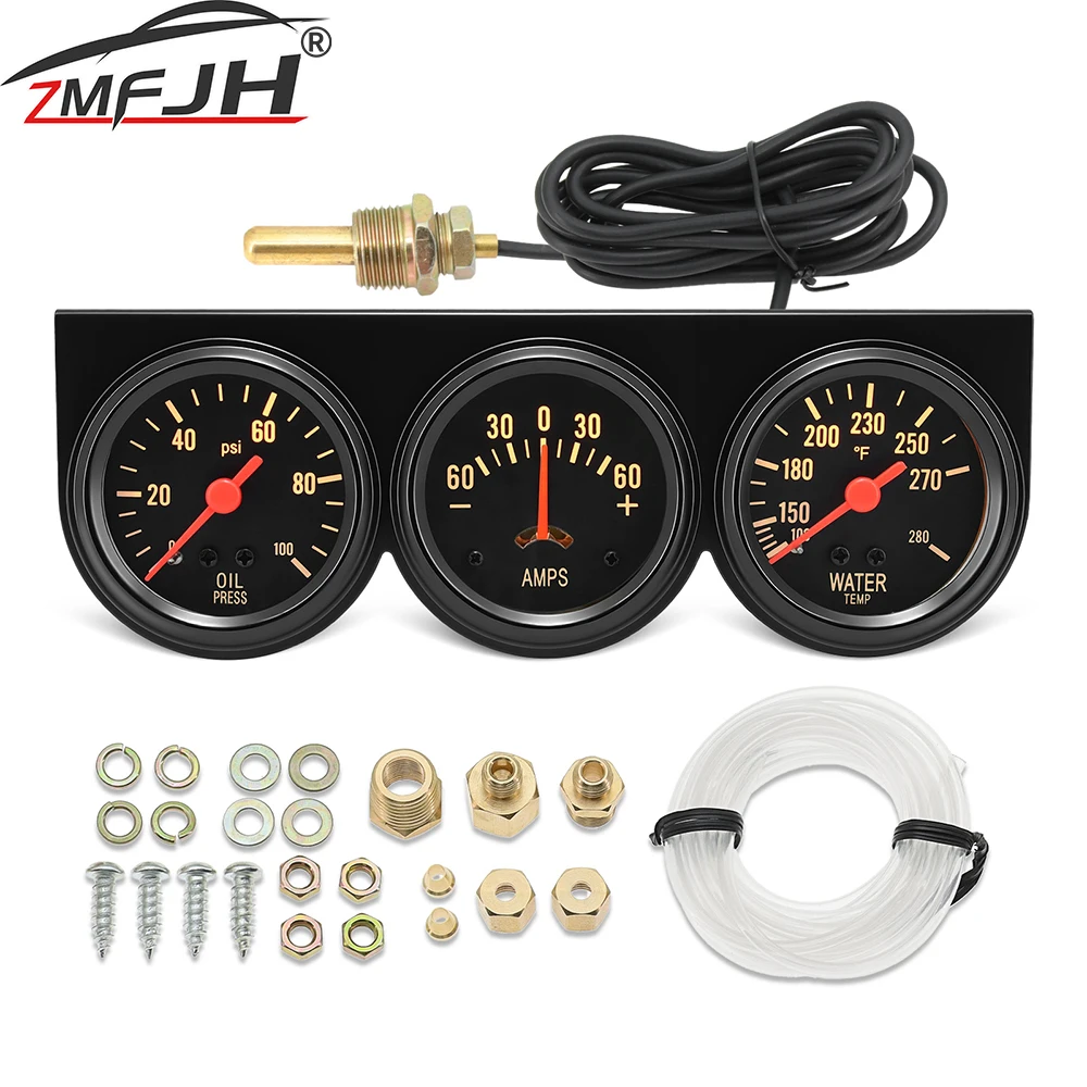 Многофункциональный автомобильный манометр 3-в-1: 0-100 PSI (для измерения давления масла) и 60-60 А (для измерения тока) 100-280 В ° Датчик температуры воды для 12-вольтового автомобильного двигателя