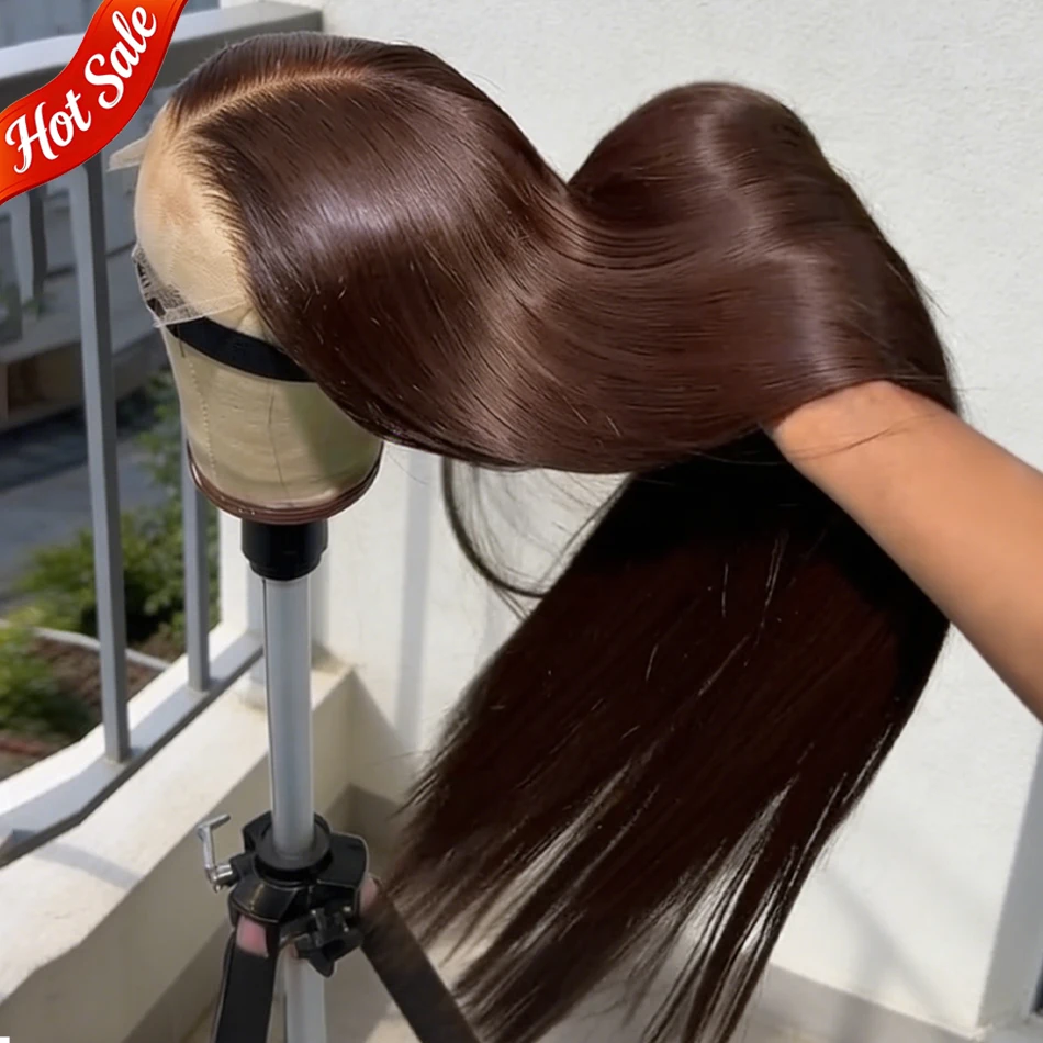 # Шоколадно-коричневый парик из натуральных волос 13x6 HD Lace Frontal, плотность 200%, прямой, предварительно прорезанный, с бэби-хейзерами, без клея, для женщин