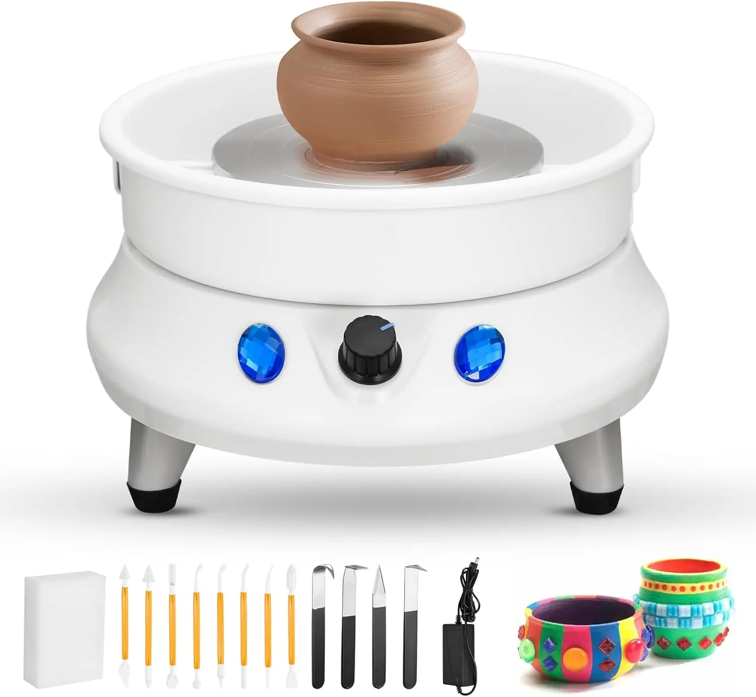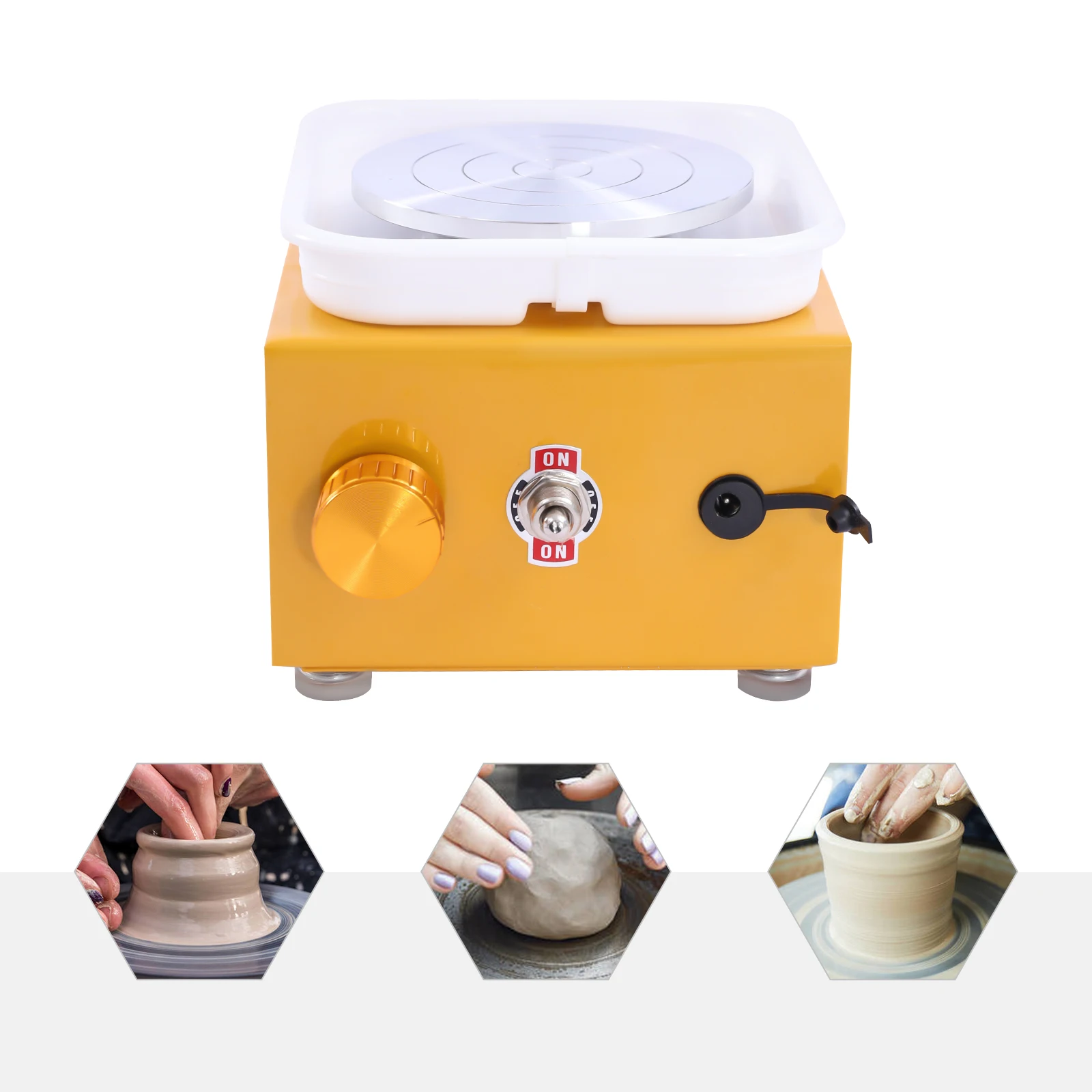 Электрическое мини-гончарное колесо, поворотный стол для гончарки, 2000 об/мин со съемной раковиной из АБС-пластика, керамическая пластина 10 см для художественного творчества из глины